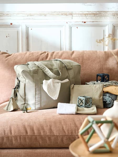 Sac à langer en lin et coton Bilbao kaki - Vertbaudet
