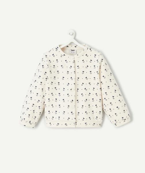 cardigan bébé fille en fibres recyclées écru imprimé à fleurs en forme de cœur