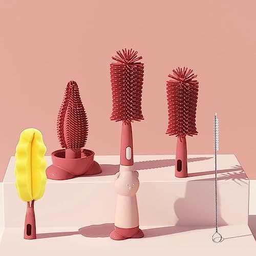 Oruiiju Goupillon Biberon Silicone,3 en 1 Nettoyage Biberon Brosse,sans BPA,Durable et sans Rayures,Goupillon Biberon et Tétine pourToutes Les Tailles de Biberons