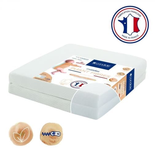 Matelas Pliant 2 parties Fibres déhoussable 60 x 120 cm