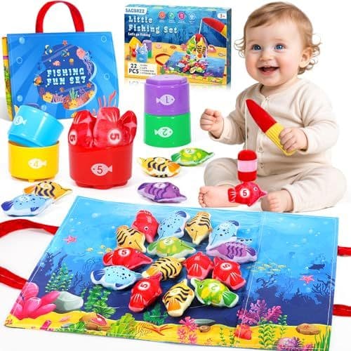 SACBRZZ Jouet Bebe 1 an, Peche a La Ligne Enfant 1 2 3 Ans, Pêche a La Ligne Jeux Montessori 1 an, avec 15 Poissons, Educatif Jouet Enfant 1 an, Cadeau Bebe pour Fille Garçon 1 2 3 Ans