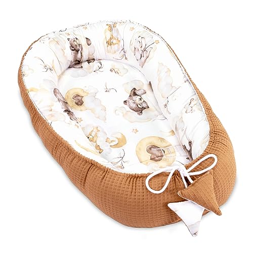 Totsy Baby Nid d'ange pour Nouveau-né 90x50 cm - Cocon Fait à la Main des Deux côtés en Coton Ours Brun