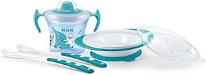 NUK Ensemble de vaisselle pour enfant avec gobelet d'apprentissage - Bol d'apprentissage avec 2 couvercles et 2 cuillères pour bébé (x2) - 6 mois et plus - Bleu