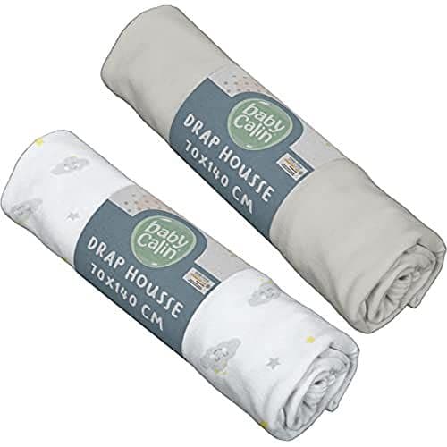 Lot de 2 draps housse 70x140x17cm Nuage/uni gris certifié OEKO-TEX
