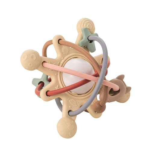 Anneau de dentition en silicone avec hochet Galaxy beige
