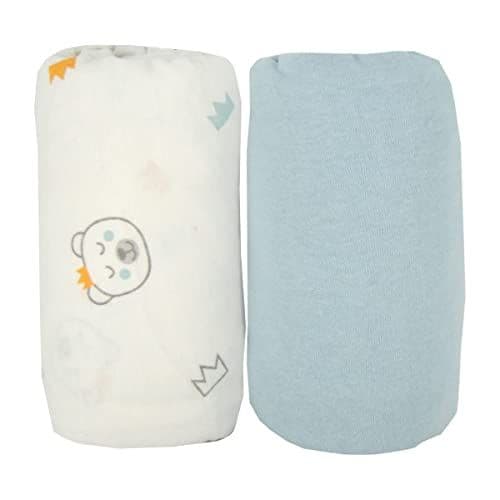 Lot de 2 draps housse 70 x 140 cm ours/Uni Bleu certifié OEKO-TEX