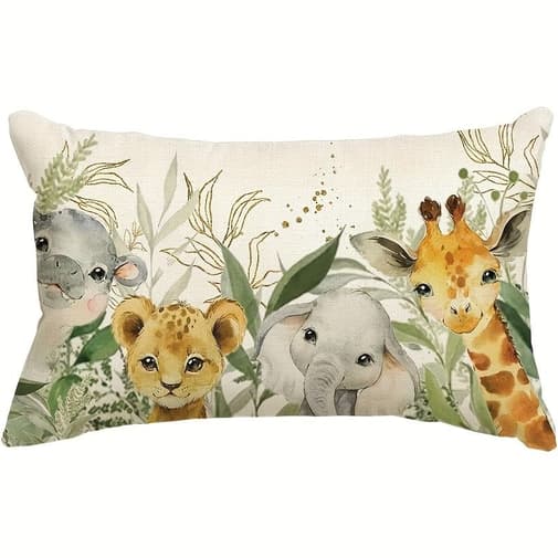 Ensemble de 2 housses de coussin * animalier * - polyester, lavable en machine, *, avec motif d’éléphant tropical et de * pour la décoration de * et du jardin - convient à différents types de pièces, 30,48 x 50,8 cm (insert non *)