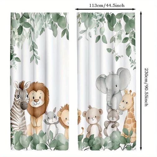 2 Pcs Rideaux d'Animaux * à Poche de Tringle, Dessin * * Lion pour Chambre, Draperies de Fenêtre à Motif de Jungle Forestière pour Salon, Convient pour Salons, Chambres, Bureaux - Décoration de Maison pour les Fêtes