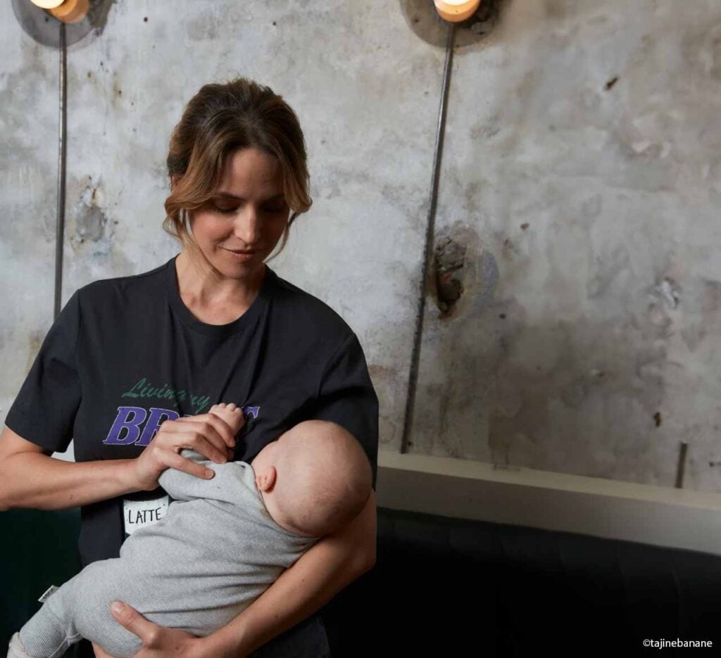 Sans doute l’aisance et ce petit air de « je me moque de ce que vous pouvez penser » ne te viendront pas immédiatement en matière d’allaitement en public. Alors écoute, une fois n’est pas coutume, je vais te parler de moi. J’écris pour minipouce depuis cinq ans et j’ai eu la chance d’allaiter mes trois enfants. 9 mois, 6 mois et 19 mois, de 2012 à 2016. Je te laisse faire l’addition : je ne suis pas experte, mais j’ai roulé ma bosse côté boobs à l’air et à l’époque, Tajinebanane n’existait pas (j’exagère à peine si je te confie que lorsque cette marque est née en 2019, j’ai eu limite envie d’un petit quatrième, juste pour le plaisir d’allaiter en mode badass et cool à la fois. Limite.)