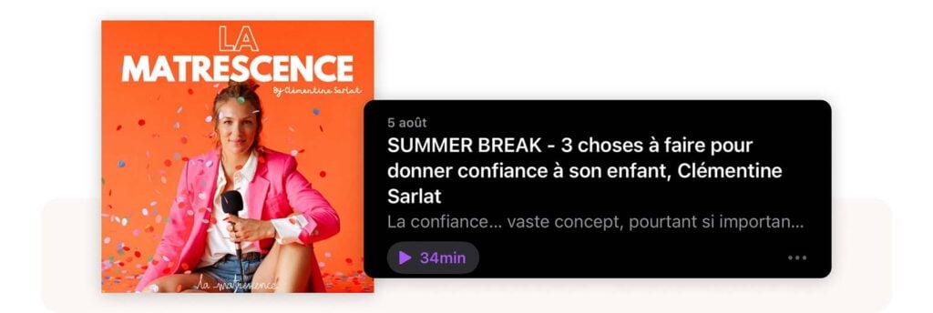 Podcast 1 : « La Matrescence » par Clémentine Sarlat, épisode « 3 choses à faire pour donner confiance à son enfant«