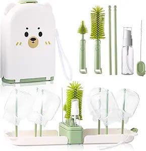Amazon.com: Baby Bottle Cleaner Brush Set Bottle Cleaner Brush Set Portable Bottle Cleaning Kit Set Silicone Brush, Nipple Brush, Straw Brush, Dispense Detergent Dispenser, Drying Rack - 6 in 1 : Baby
