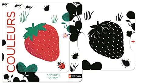livre en noir et blanc qui passe en couleurs grâce aux animations, pour les bébés des 6 mois. Les belles couleurs