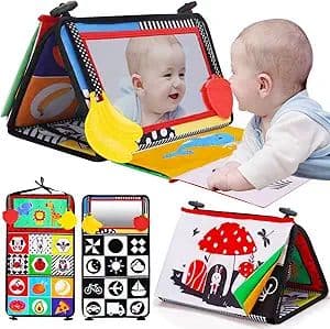 Amazon.com: Tummy Time Baby Mirror Infant Toys Newborn 0 3 Months Brain Development with Crinkle Cloth Book Teether Black and White High Contrast Baby Toys 2 4 5 0-6 Month Boys Girls Sensory Activity Shower Gifts : Toys & Games