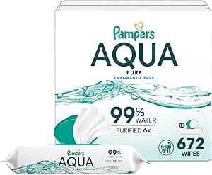 Amazon.com: Pampers Baby Wipes Aqua Pure, 99% water-based wipes, Hypoallergenic and Unscented Baby Wipes, 672 Wipes Total (12 Flip-Top Packs)